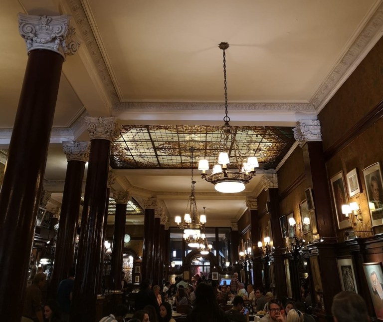 – Café Tortoni. Il Café Tortoni è un café inaugurato nel 1858 da un immigrato francese. Il nome Tortoni riprende l’omonimo caffè parigino situato sul Boulevard des Italiens (dove l’élite della cultura parigina si riuniva nel XIX secolo). Il Café Tortoni è considerato tra i dieci caffè più belli del mondo, ma sembra che si stia ancora facendo affidamento sul suo passato splendore per attirare turisti (ed il personale lascia i clienti in fila fuori anche quando c’è posto dentro)