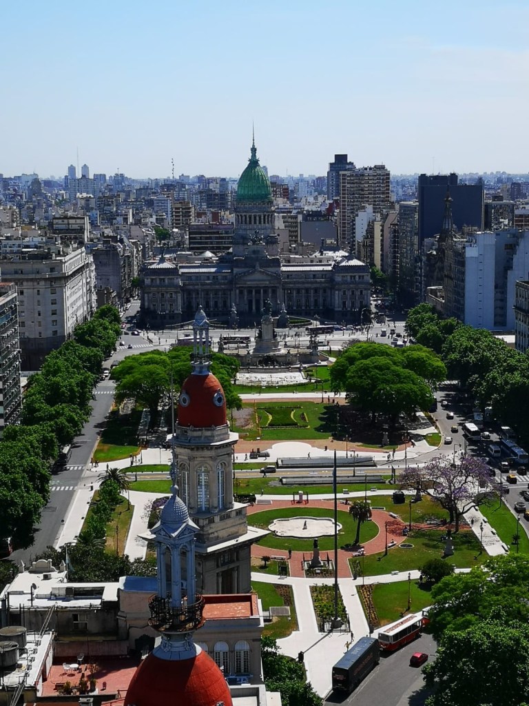 – il Palacio Barolo. Il Palacio Barolo fu costruito durante la prima guerra mondiale e sponsorizzato da un fan della Divina Commedia di Dante. Il palazzo è diviso in inferno (fino al piano terra), purgatorio (piani 1-14) e paradiso (piani 15-22). Ha molti simboli collegati a Dante (ad esempio è alto 100 metri come il numero di canti), all’Italia (i colori della bandiera italiana sono spesso ripetuti) e alla massoneria. Non solo il palazzo bello è per il suo valore artistico, ma anche la vista dall’alto (vedi foto sopra) sul palazzo del congresso nazionale e la sua piazza è mozzafiato! (o meglio dire… paradisiaca?!)
