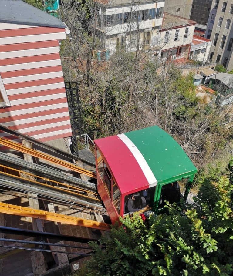 – I Porteños che vanno in altri cerros devono avere muscoli incredibili nelle gambe! Ebbene sì! Ma hanno anche costruito funicolari per aiutarli a muoversi su e giù. In passato c’erano circa 30 funicolari; oggi ce ne sono solo 16, di cui 7 funzionanti e 9 in restauro. Ne abbiamo prese alcune per girare la città poiché ti risparmiano di scalare le colline. Ce n’è anche una (Reina Victoria) che ha uno scivolo per portarti al livello della strada!