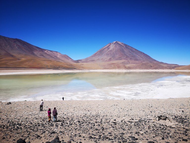 After a kilometre drive we arrived in the Laguna Verde (as the water is a bit more green – when it is more windy the water looks really green as the algae is moved around)
