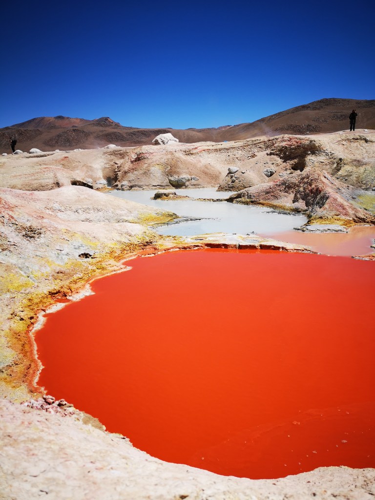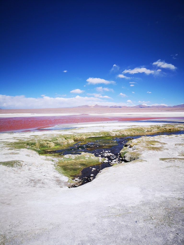 And our final stop for day 1: Laguna Colorada. Since we have been driving on what feels like broken porcelain for the whole day (with a lot of ups and downs) combined with the high altitude (we reached 5,000 m), we are not feeling at our best.