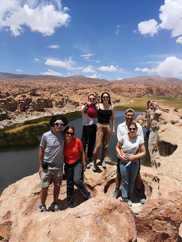 The valley with all the lamas: time for a group picture with our fellow travelers with whom we share the car, thanks guys for being great travel companions!