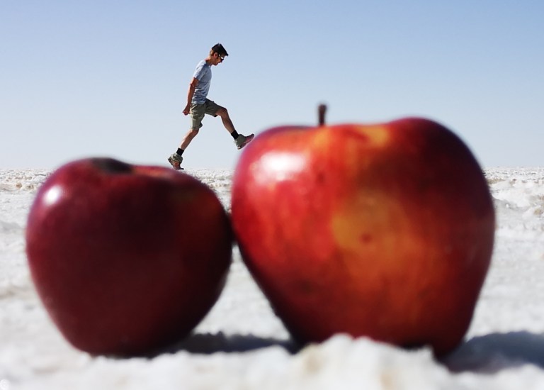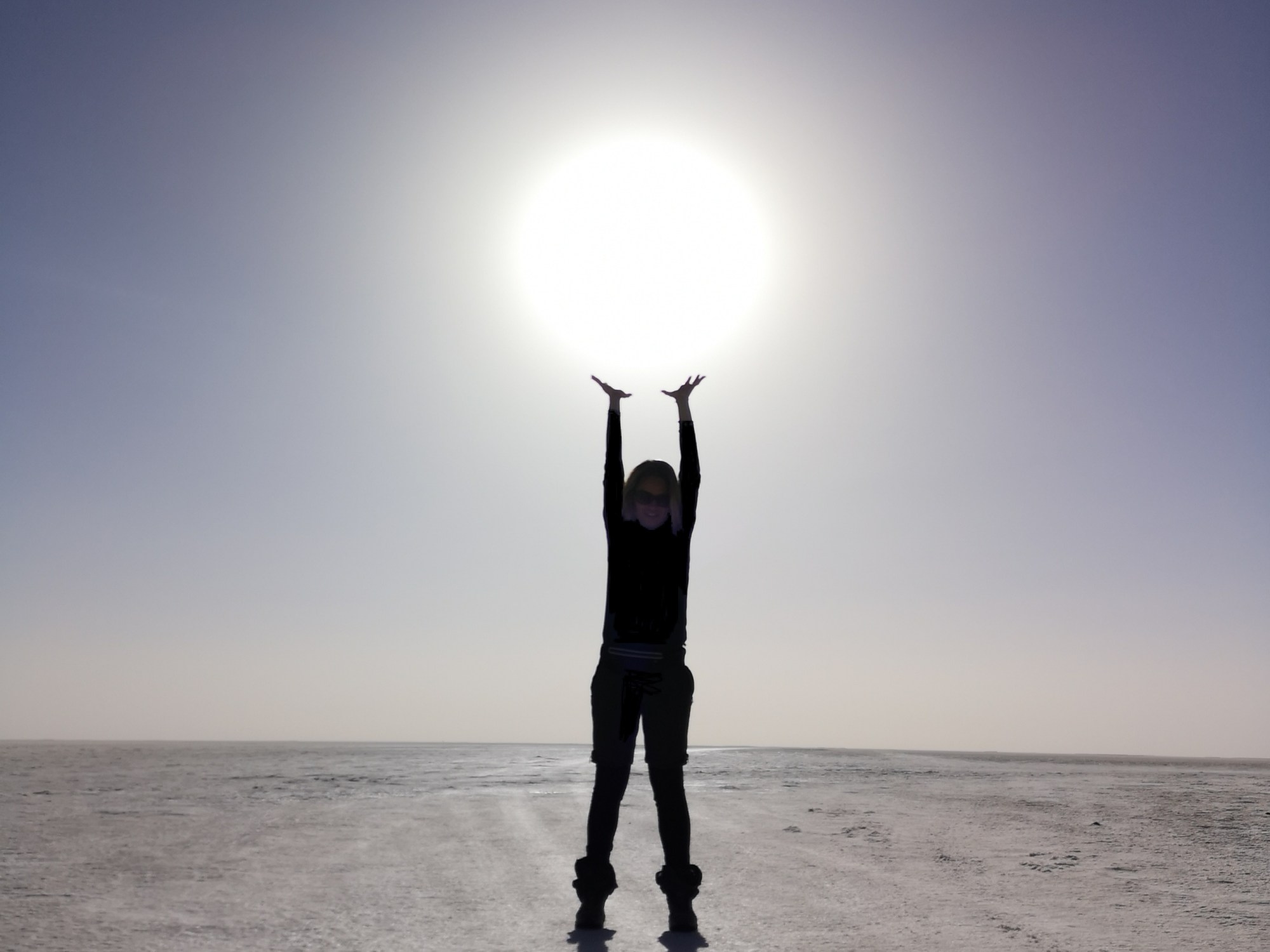 Dopo colazione su un tavolo e sedie fatte di sale, iniziamo a fare un paio di fantastiche foto con l’aiuto della prospettiva.