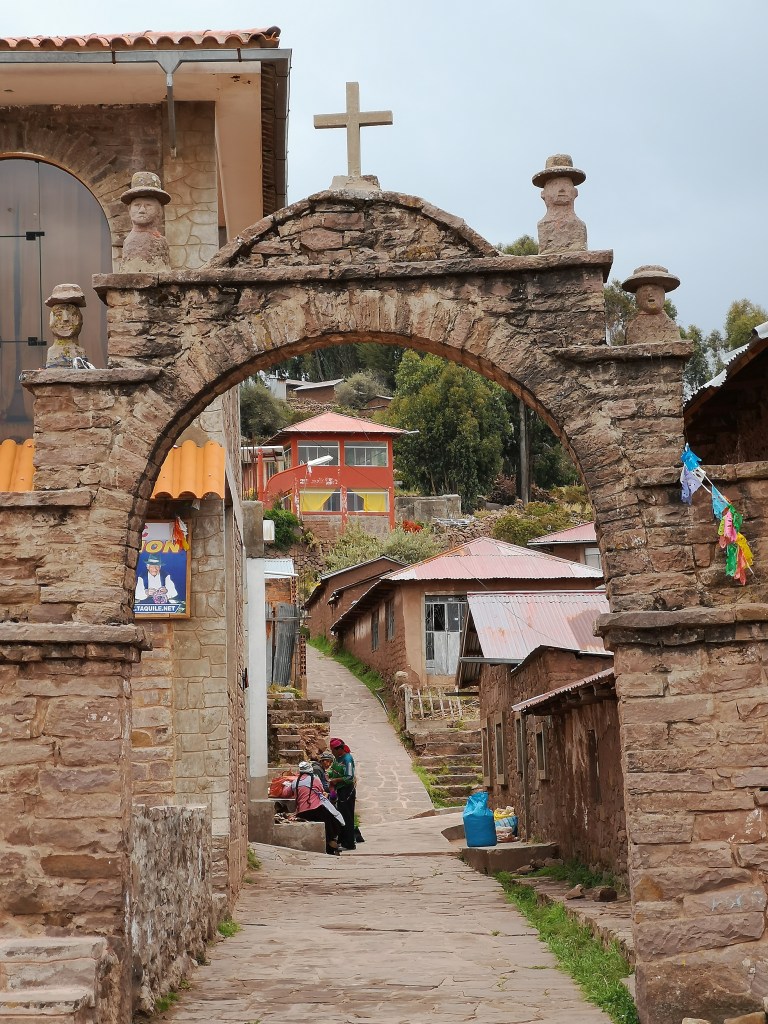 Arriviamo all’isola di Taquile, dove facciamo una bella camminata fino alla piazza principale. Taquile, proprio come Amantaní, è priva di auto (è troppo ripida per le auto) e il trasporto viene effettuato manualmente.