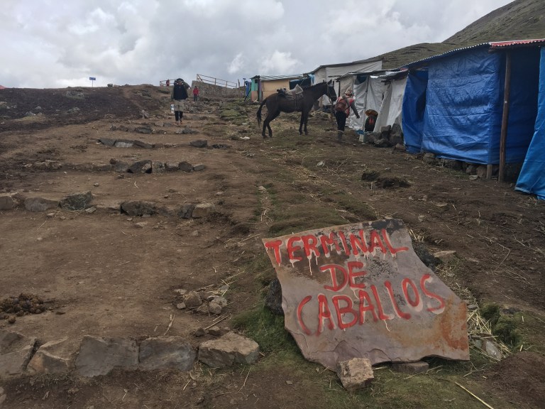 Ad ogni modo, una volta arrivato alla base della montagna, sei colpito dal dilemma: prendo il primo passaggio disponibile al terminal de caballos 🐎 o salgo in cima a piedi? La corsa a cavallo costa 60 soles (o 15 sterline) solo andata, ma non ti porta fino in cima.