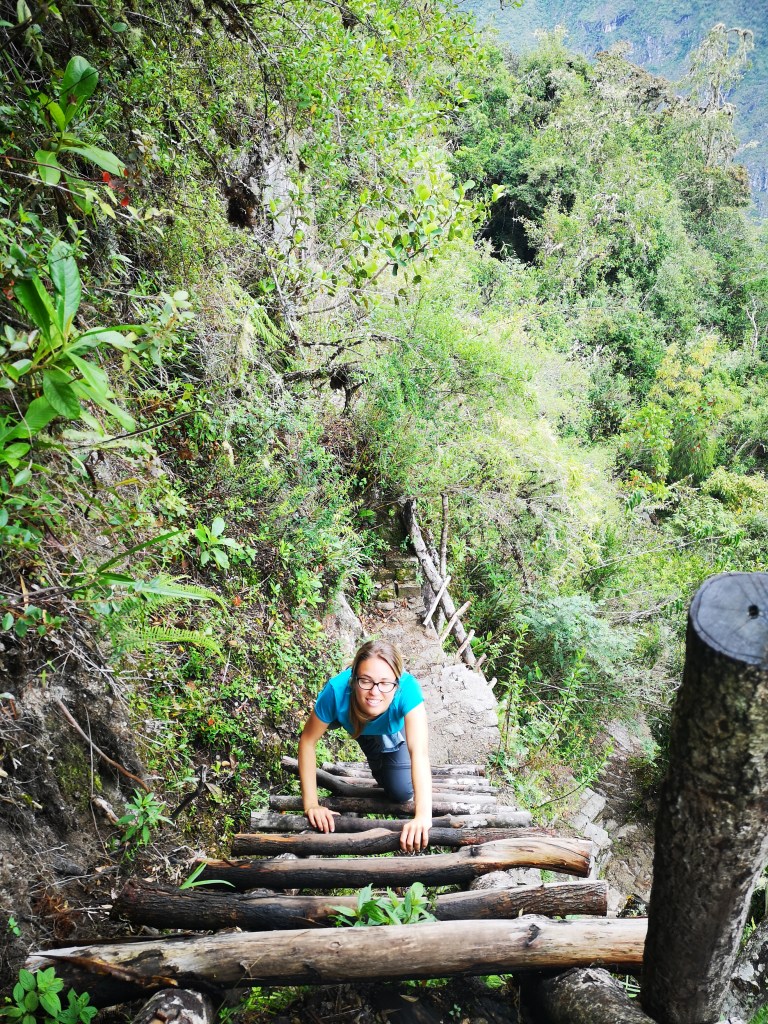 Salire su Huayna Picchu è molto speciale, ma la salita è molto ripida (notate il mio sguardo terrorizzato) ….