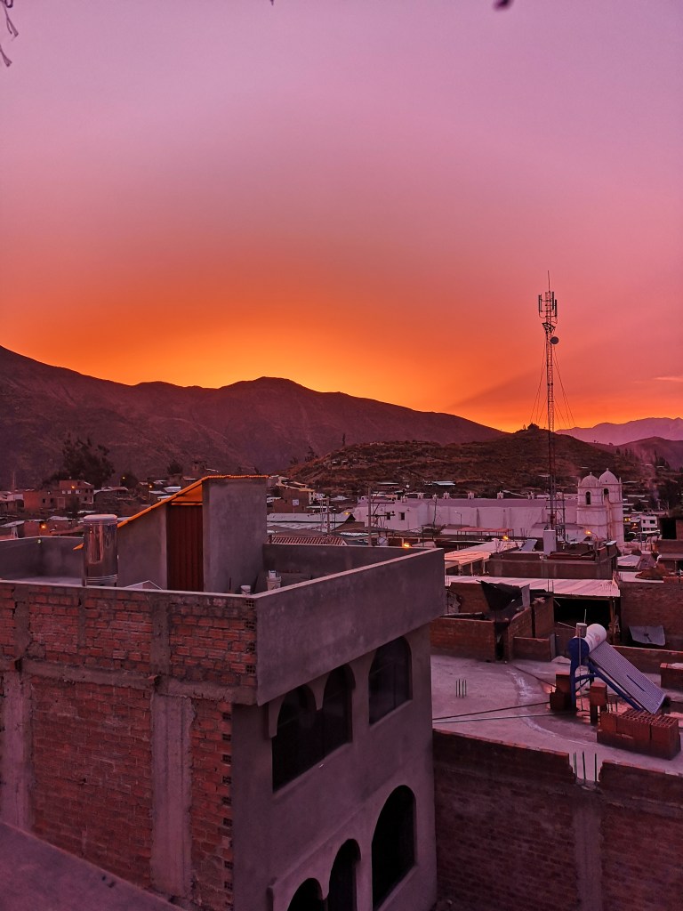 Come per molti altri, il nostro viaggio è iniziato a Cabanaconde (ostello Pachamama – davvero consigliato). Il Colca ci ha accolto con un tramonto incredibile dal tetto dell’hotel – la luce cambiava così rapidamente e il cielo si è colorato come una tela.