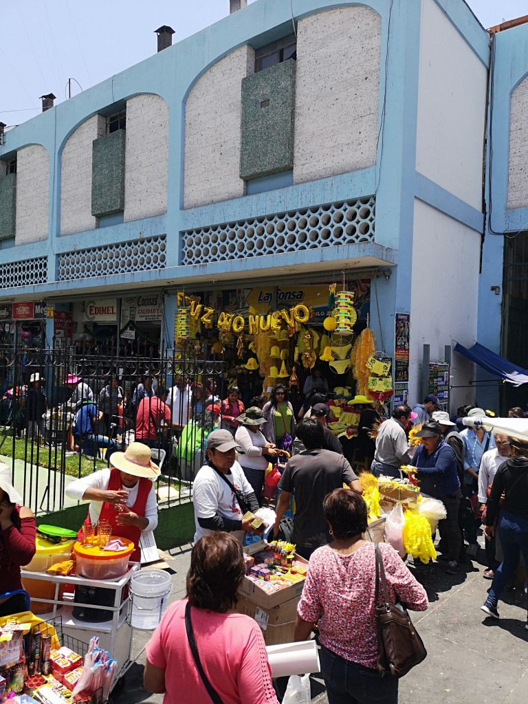Passiamo accanto al mercato e poiché oggi è l’ultimo giorno dell’anno, gli accessori gialli (da indossare a capodanno) sono venduti ovunque.